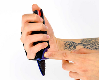 Brooke:All Go-Guarded products are targeted for active people wanting a little extra protection when exercising out alone. The products range from defence rings to paperspray to a combination of products. The handheld + pepper spray combines a tactical knife on one side with pepper spray on the other. Easy to hold in one hand while running or going for a walk, anyone would feel safe with this little tool.