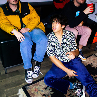 While a formal interview wasn't conducted - here are some highlights: None of the band is forklift certified, but Luke has previously driven one - please don't tell the authorities. A LaCroix sponsorship for the band would be greatly appreciated. Calvin will in fact sit on the counter every time. Luke has a conspiracy about the mafia and glitter but we'll let him give you the deets on that... Oh and both Calvin and Luke truly admire Ross' "smexy ankles," smankles if you will.